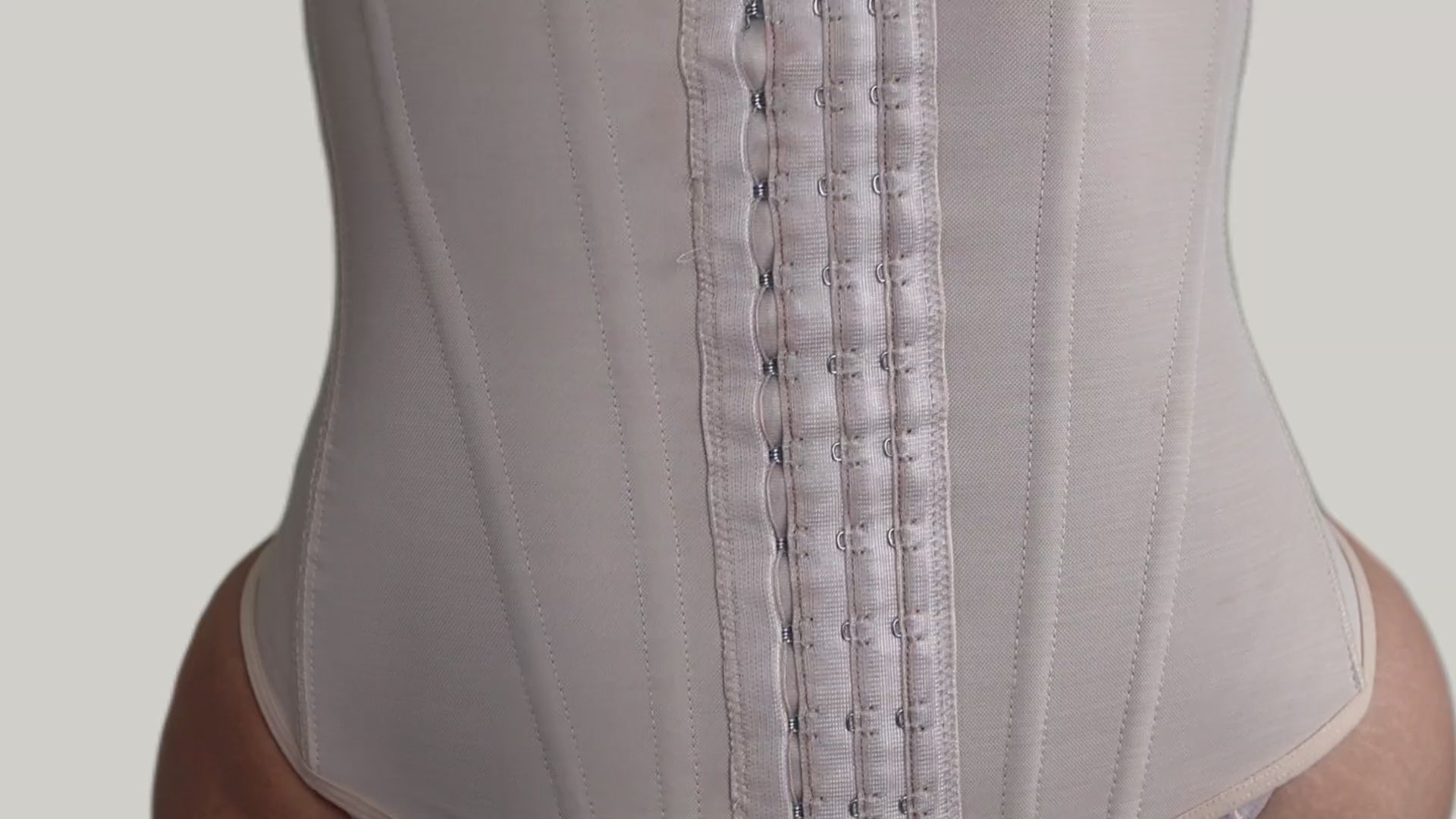 - Cuenta con 28cm de largo que cubre todo el abdomen y es corta de atrás para evitar tapar el glúteo.